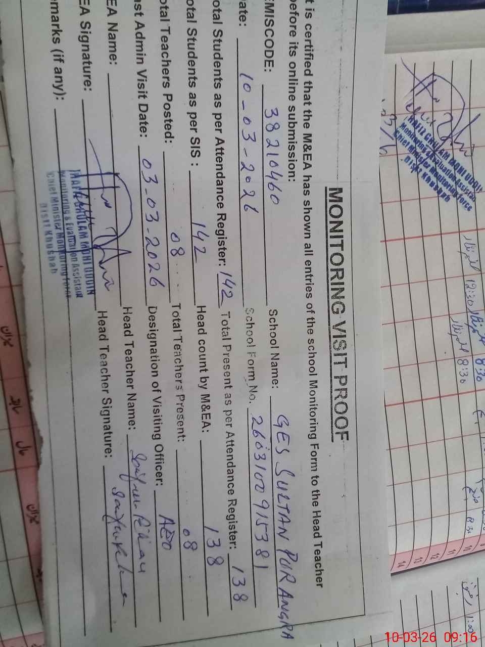 | EMIS Code: 38210460 | Name of School: GES SULTAN PUR ANGRA | |||