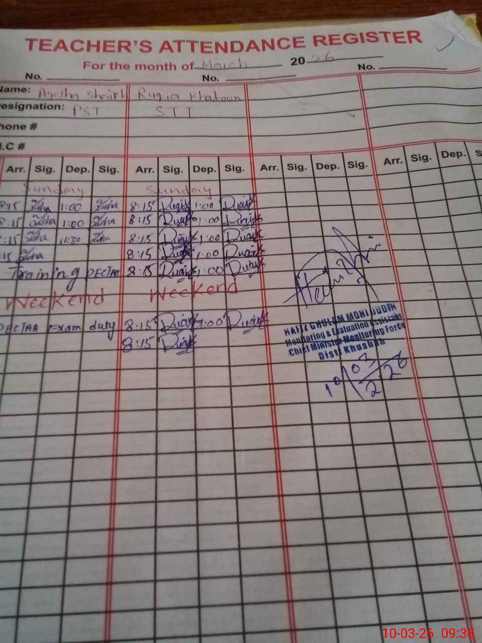| 38**** | Ay**** Sh**** | PST Science/Maths | Regular | 0 | 0 | 0 | 0 | 0 | 0 | 0 | 0 | 0 | Exam Duty |