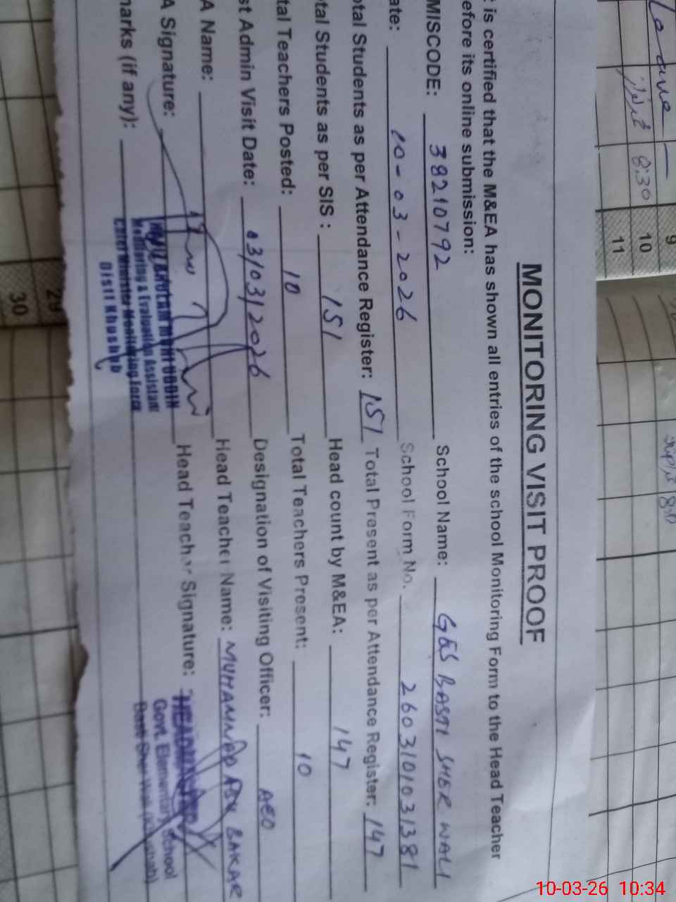 | Remarks (Use Separate Page if Required): last visit by AEO 03 march 2026 | |||||