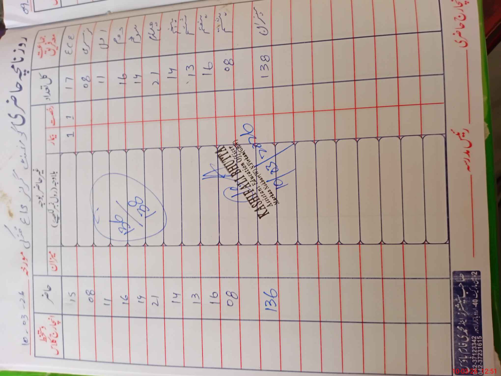 | No. of Students Present - Female | 0 | 15 | 11 | 16 | 14 | 21 | 14 | 13 | 16 | 8 | 136 | |||||