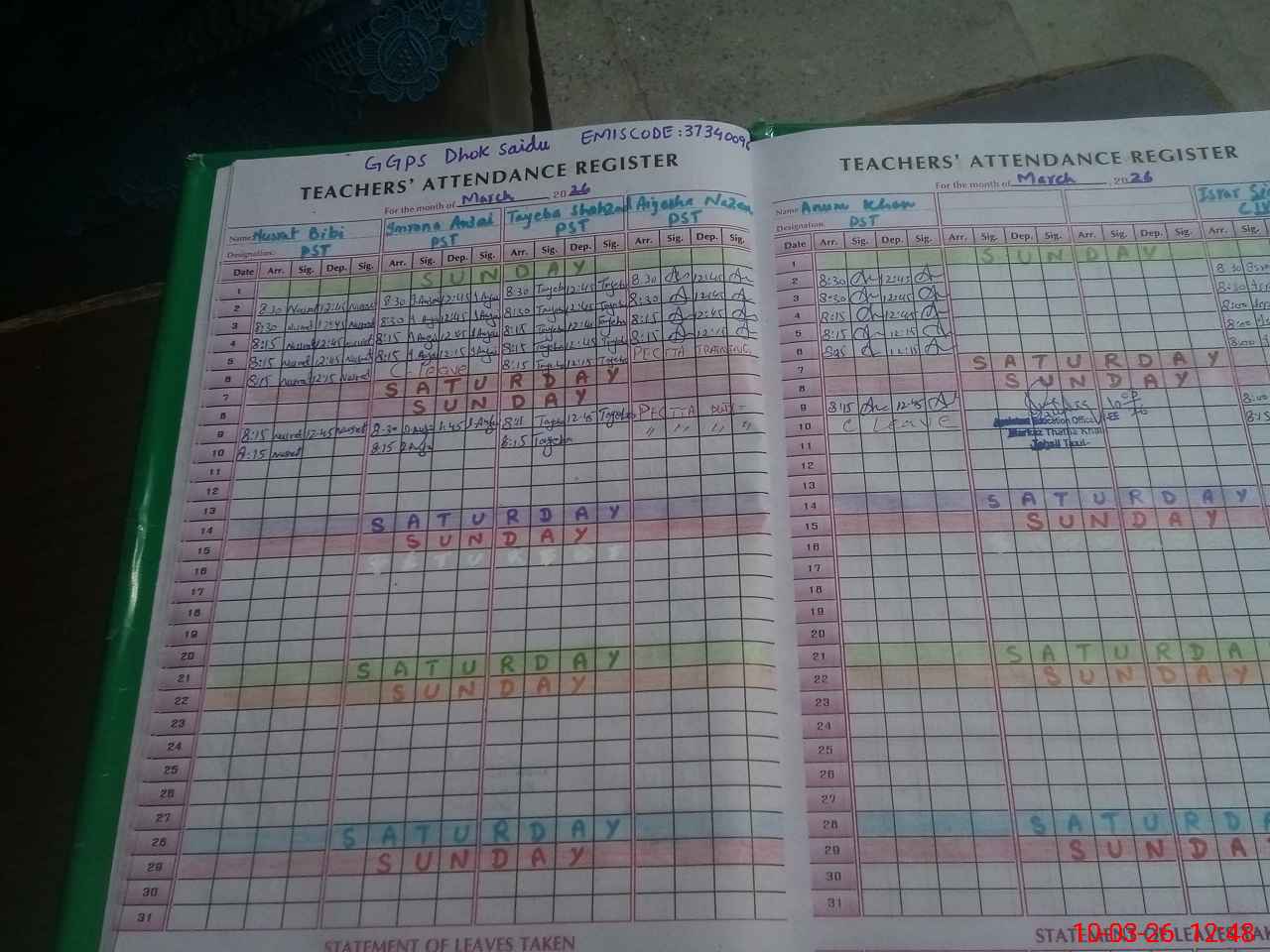 | 37**** | An**** Kh**** | PST Science/Maths | Regular | 0 | 0 | 0 | 0 | 0 | 0 | 0 | 0 | 0 | Casual |