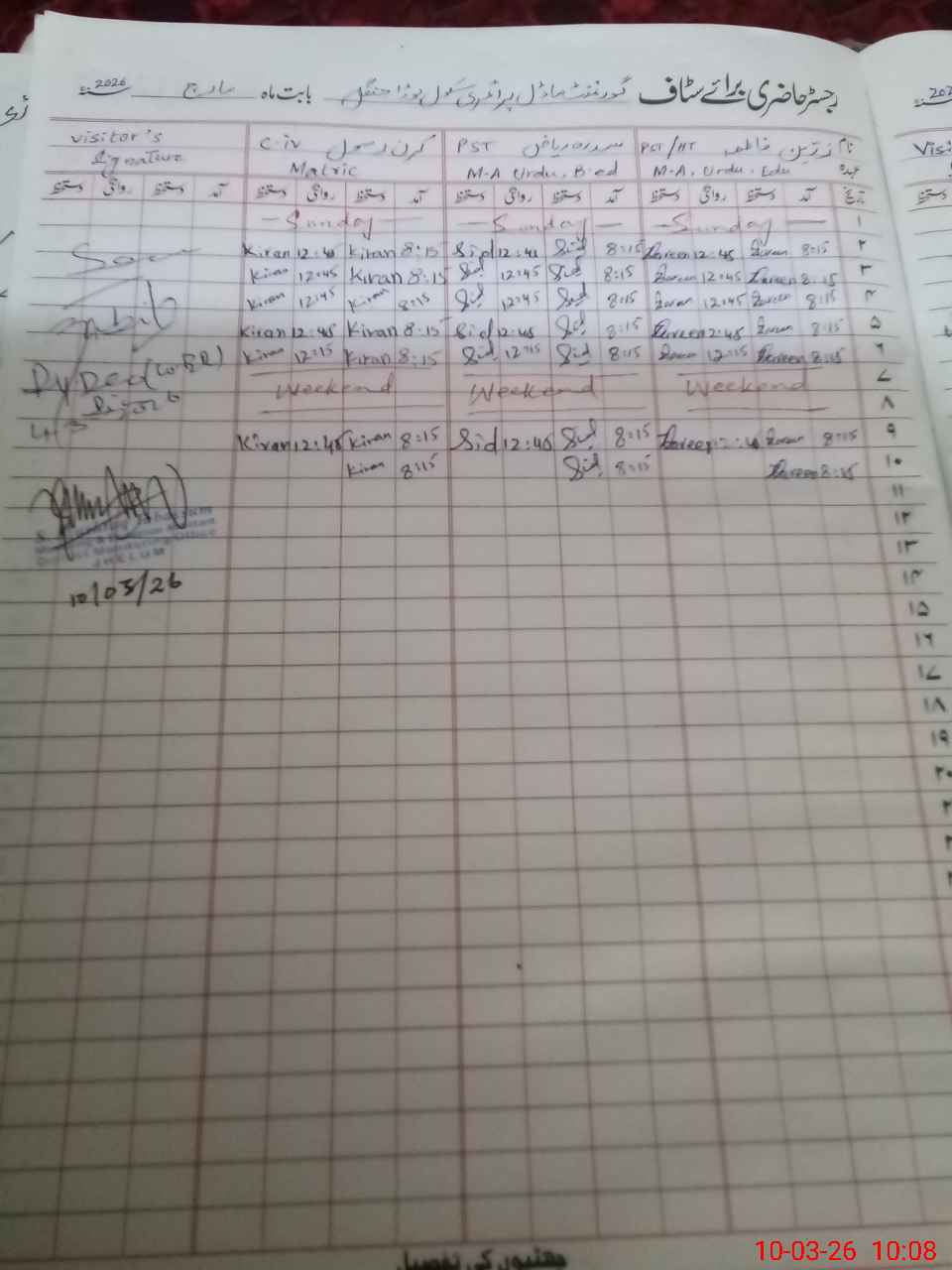 | Attendance Register | Head Teacher | MEA with School | Visit Proof |
