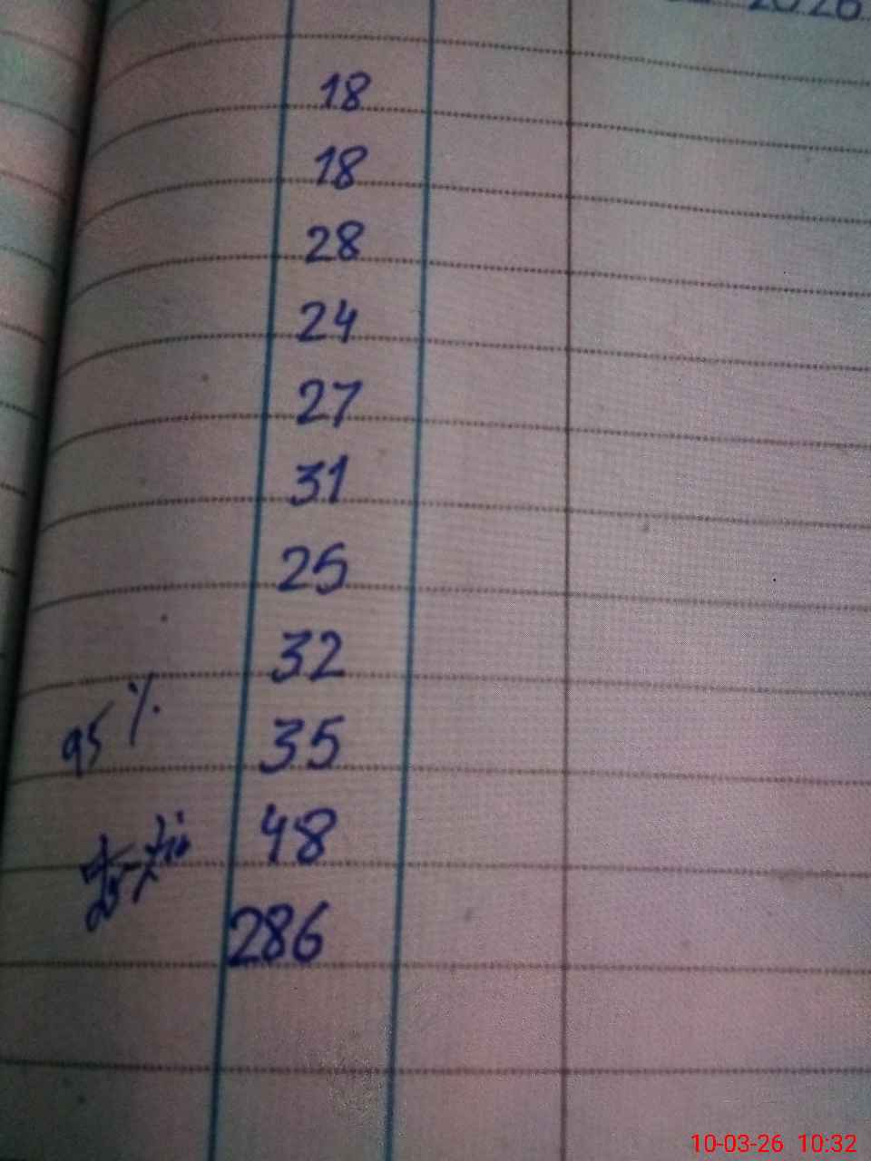 | No. of Students Present - Female | 0 | 48 | 32 | 25 | 31 | 27 | 24 | 28 | 18 | 18 | 286 | |||||