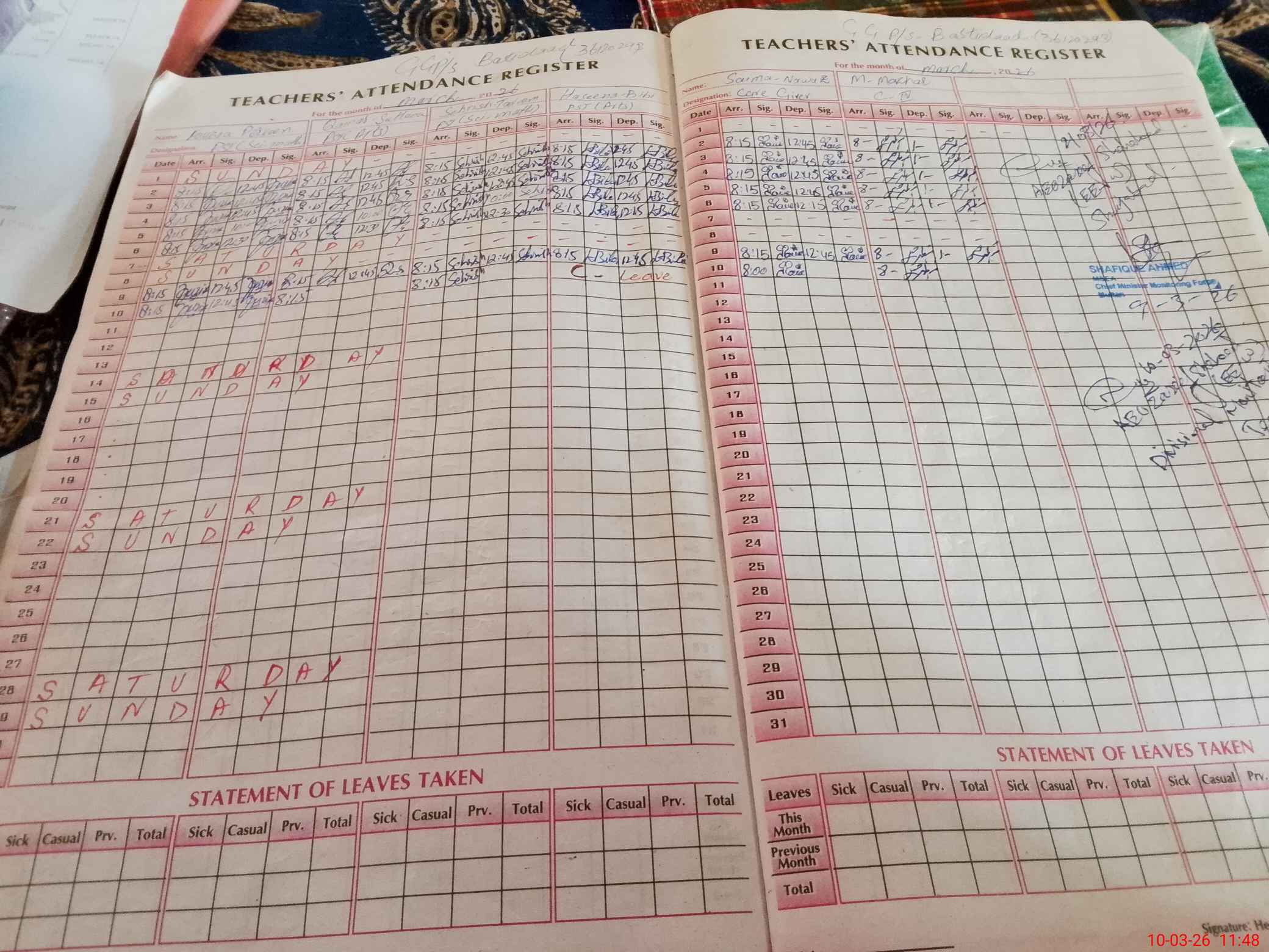| Monitoring Date: 10-03-2026 | Start Time: 10-03-2026 11:29 AM | End Time: 10-03-2026 11:49 AM | Name of MEA: Na**** As**** | |