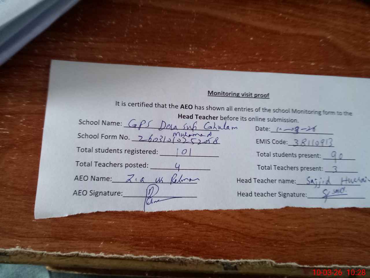 | EMIS Code: 38110913 | Name of School: GPS DERA SUFI GHULAM MUHAMMAD | |||