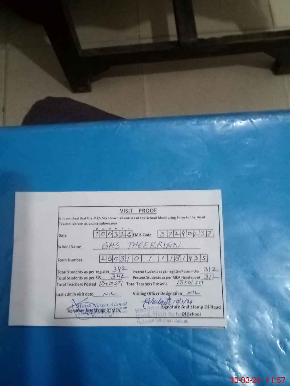 | EMIS Code: 37240237 | Name of School: GHS THEEKRIAN | |||