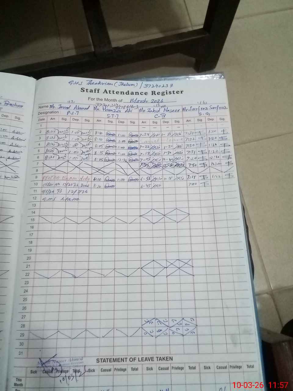 | 37**** | Ja**** Ah**** | PST Arts | Regular | 0 | 0 | 0 | 0 | 0 | 0 | 0 | 0 | 0 | Exam Duty |
