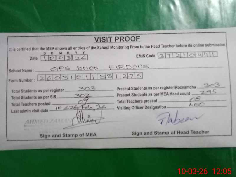 | EMIS Code: 37210441 | Name of School: GPS DHOK FIRDOUS | |||