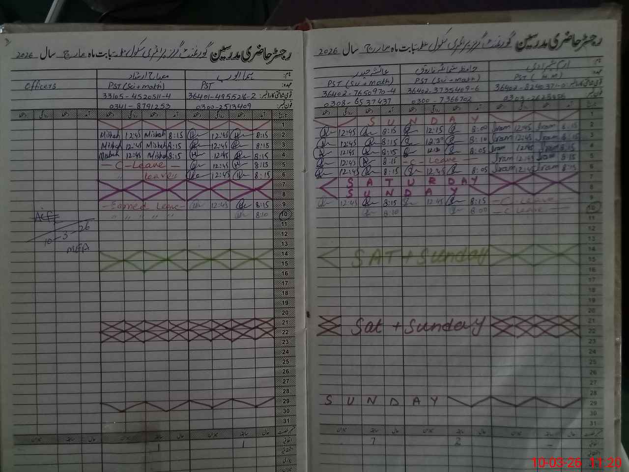 | Name: IR**** SH**** Designation: (School Headmaster's/Headmistress's) PST Phone/Cell Number: 03**** |