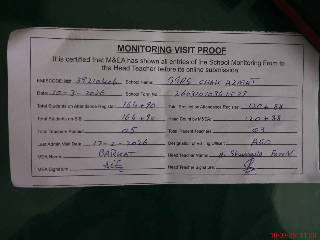 | EMIS Code: 39210406 | Name of School: GGPS CHAK AZMAT | |||