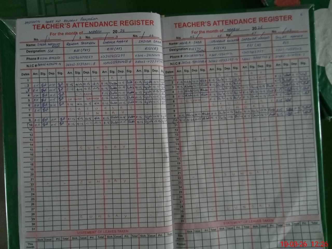 | Name: SY**** ME**** RA**** Designation: (School Headmaster's/Headmistress's) SSE SCIENCE Phone/Cell Number: 03**** |