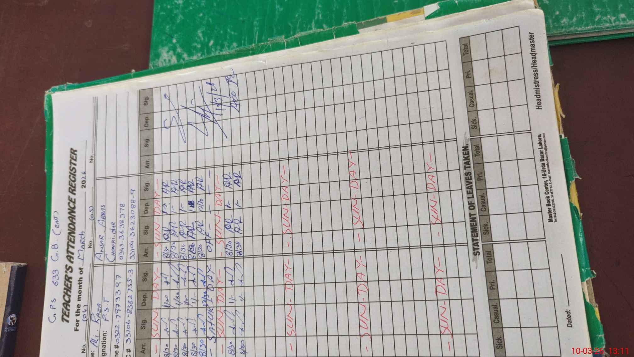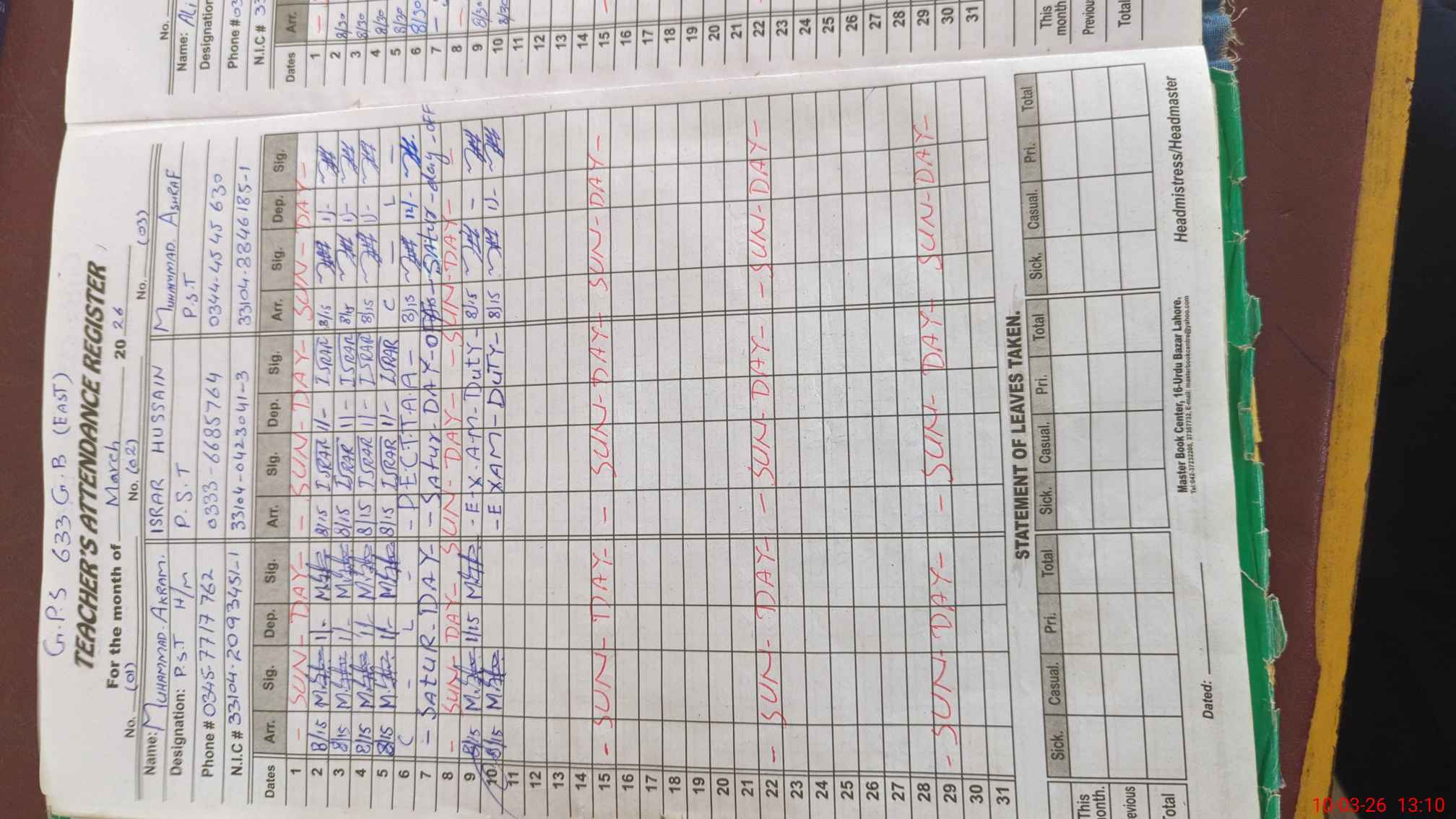 | Name: Mu**** Ak**** Designation: (School Headmaster's/Headmistress's) PST Phone/Cell Number: 03**** |