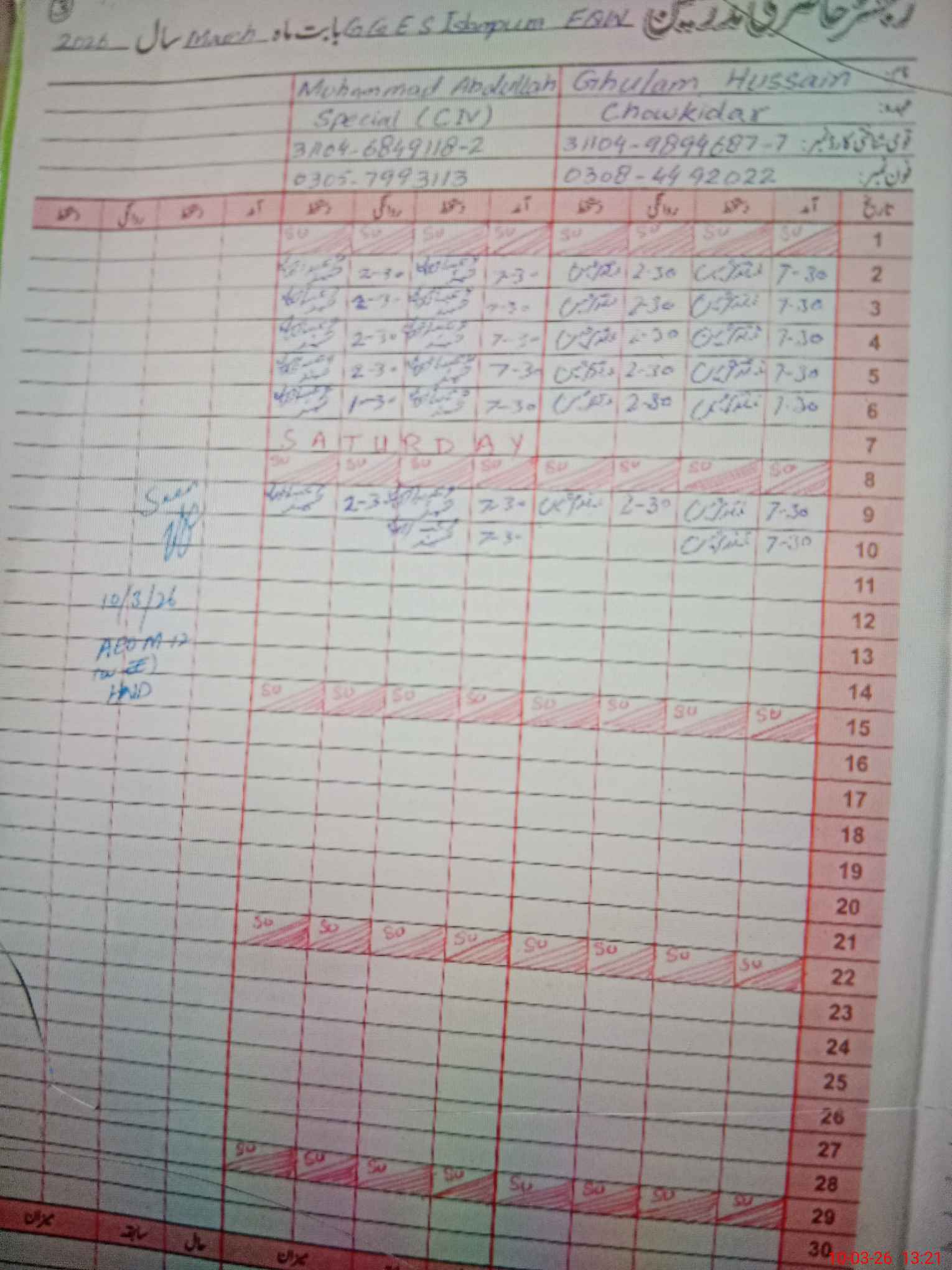 | Name: MU**** PE**** Designation: (School Headmaster's/Headmistress's) S.S.T.(G) Phone/Cell Number: 03**** |