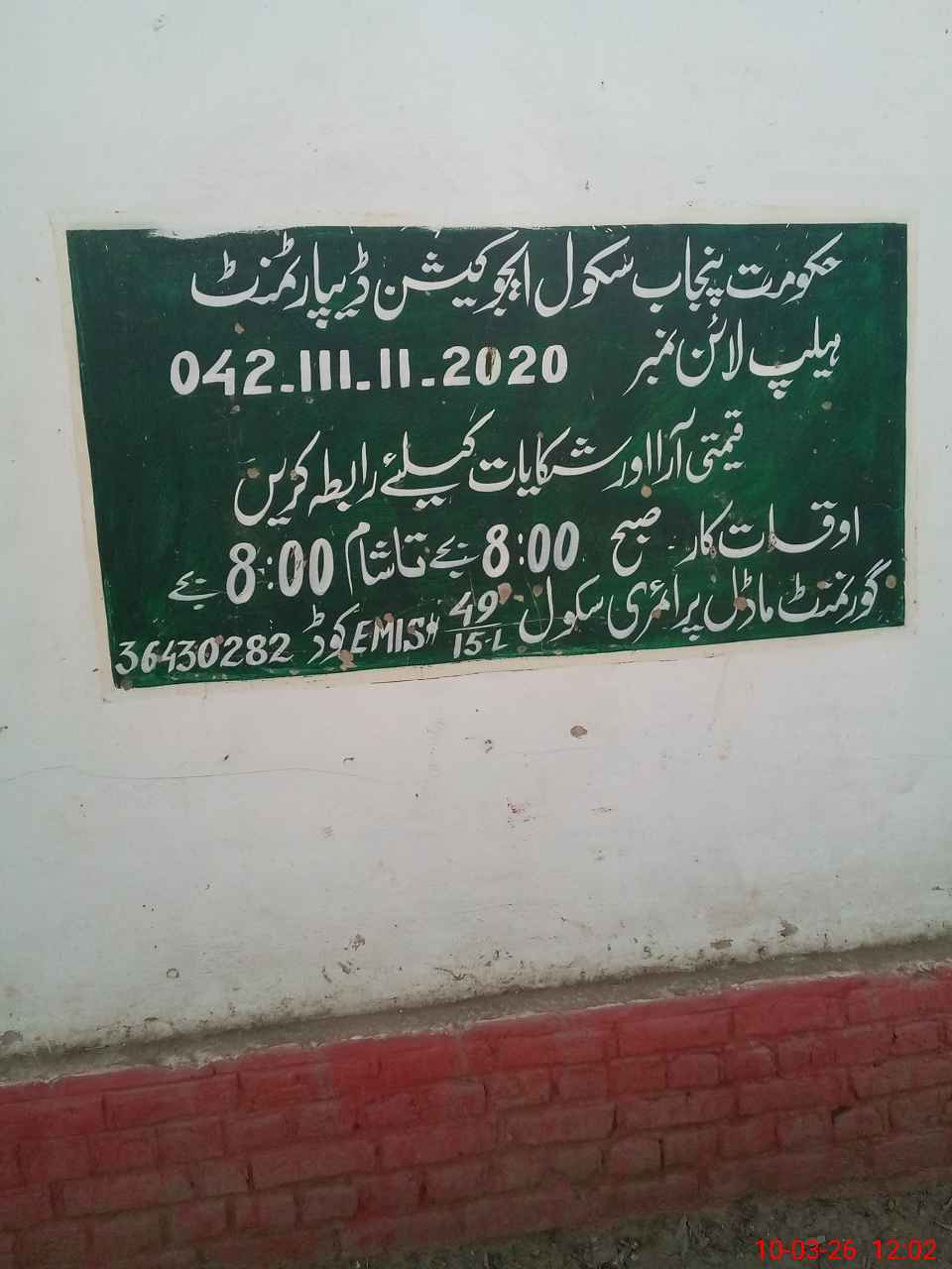 | EMIS Code: 36430282 | Name of School: GMPS 49/15-L, MIAN CHANNU | |||
