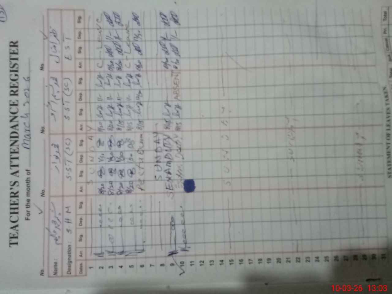 | 36**** | Mu**** Iq**** An**** | PST Arts | Regular | 1 | 0 | 0 | 0 | 0 | 0 | 0 | 0 | 1 | Exam Duty |