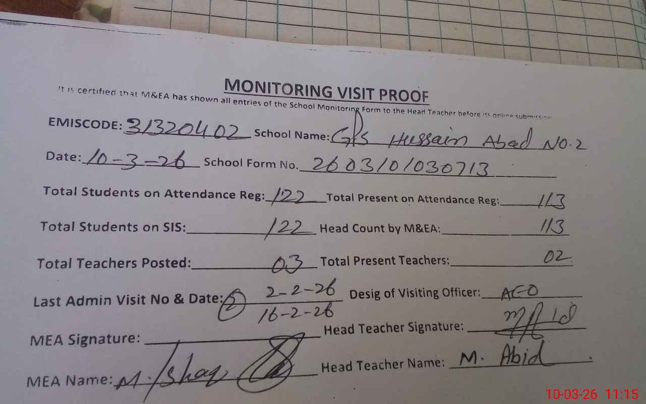 | EMIS Code: 31320402 | Name of School: GPS HUSSAIN ABAD NO.2 | |||