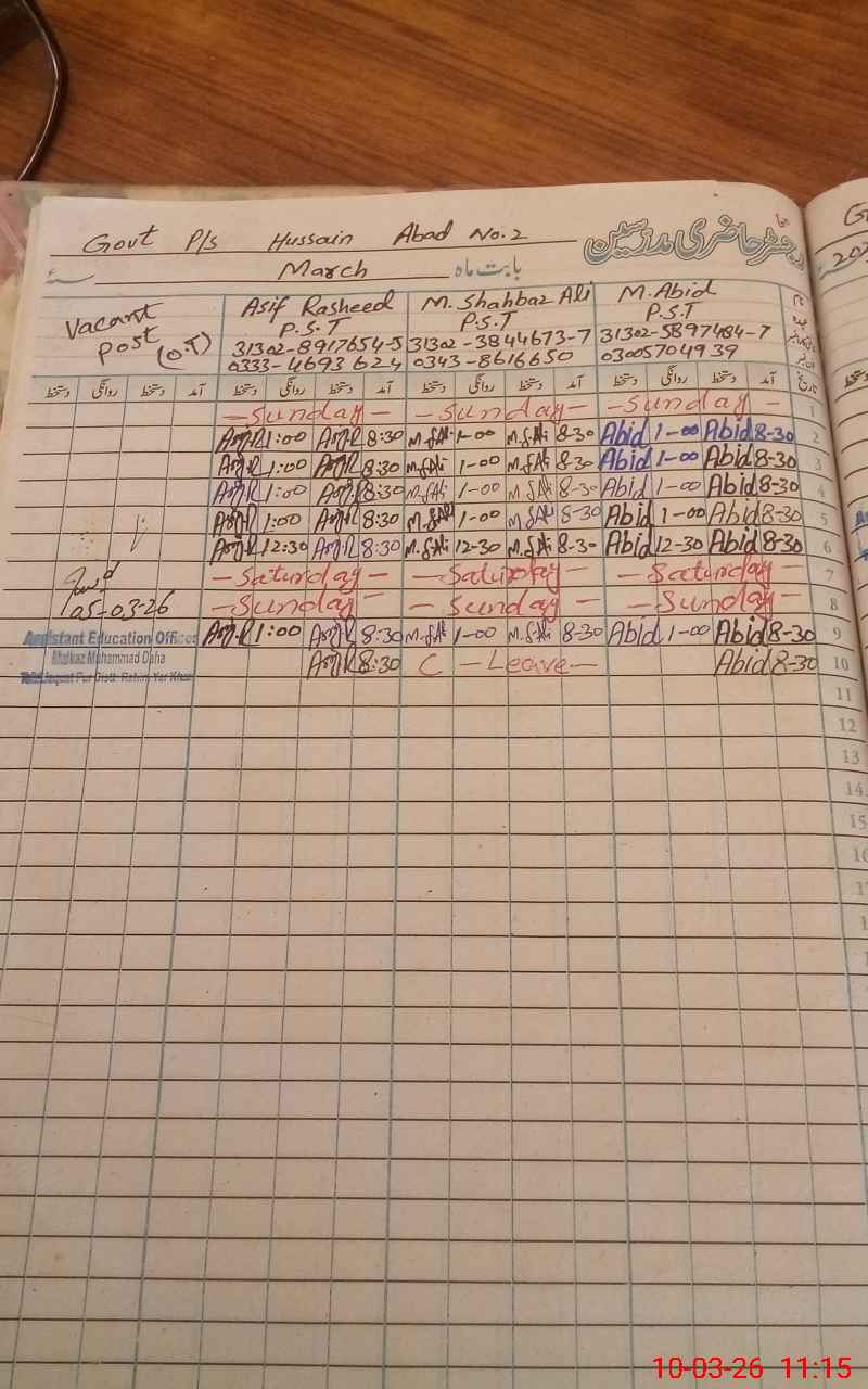 | Name: MU**** AB**** Designation: (School Headmaster's/Headmistress's) PST Phone/Cell Number: 03**** |