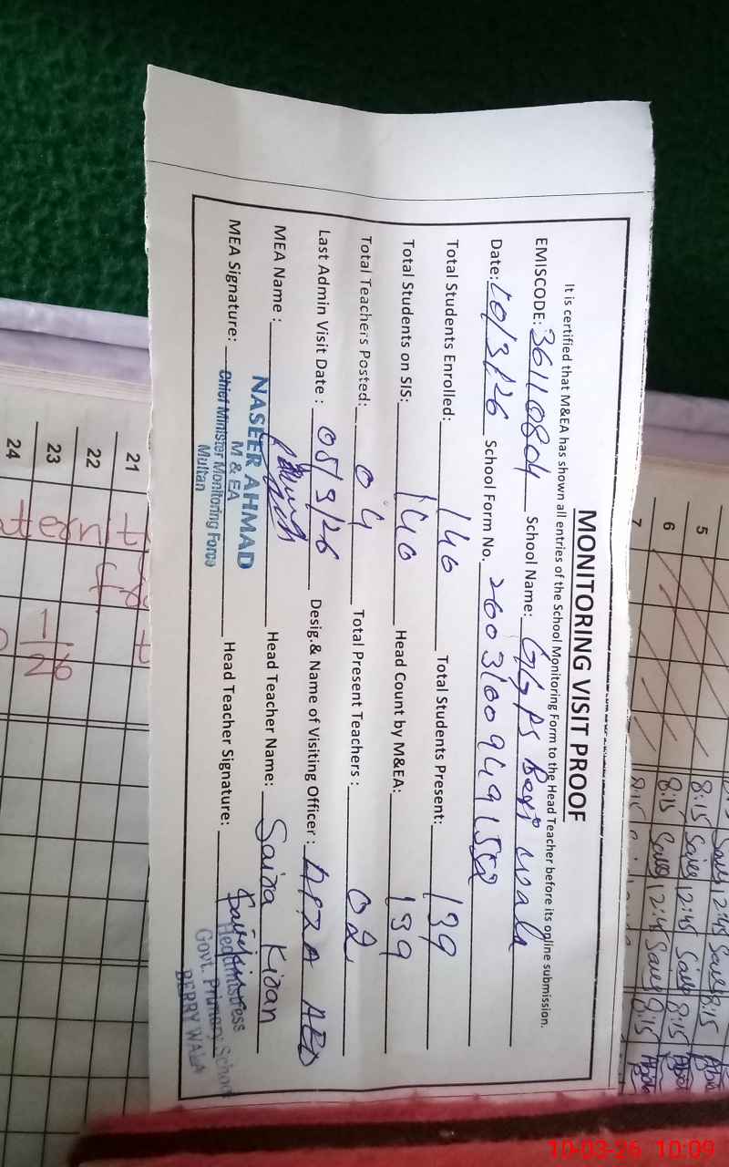 | EMIS Code: 36110804 | Name of School: GGPS BERI WALA TARAF DAIRA | |||