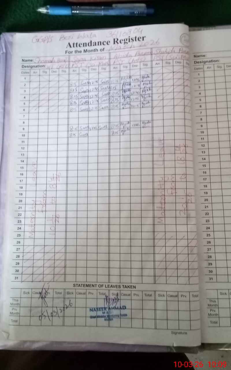 | Monitoring Date: 10-03-2026 | Start Time: 10-03-2026 09:49 AM | End Time: 10-03-2026 10:10 AM | Name of MEA: Na**** Ah**** | |