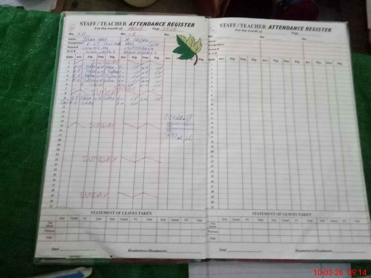 | Name: ZA**** ZA**** Designation: (School Headmaster's/Headmistress's) INCHARGE Phone/Cell Number: 03**** |