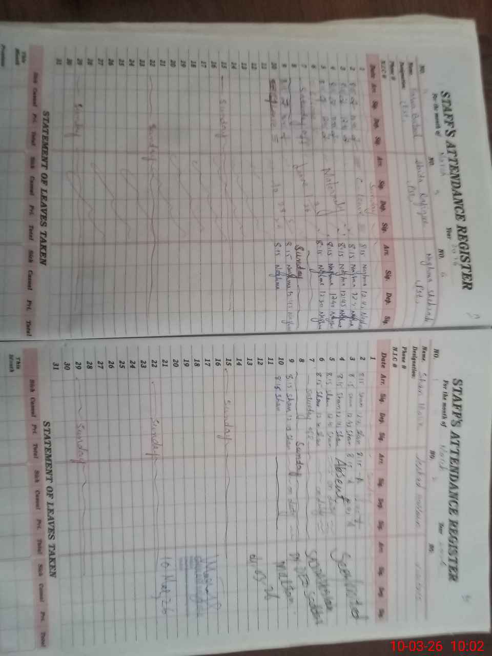 | 36**** | Ab**** Ra**** | PST Science/Maths | Regular | 0 | 0 | 0 | 0 | 0 | 0 | 0 | 0 | 0 | Maternity |