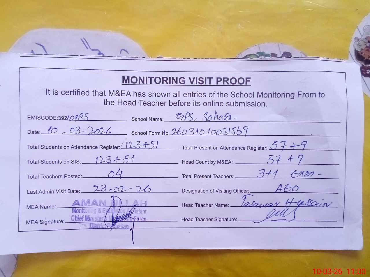 | EMIS Code: 39210185 | Name of School: GPS SOHARA | |||
