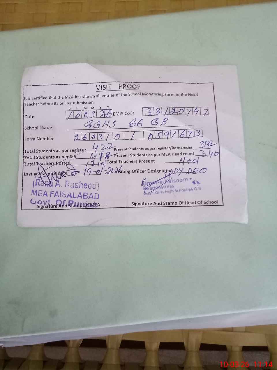 | EMIS Code: 33120747 | Name of School: GGHS CHAK 66 GB | |||