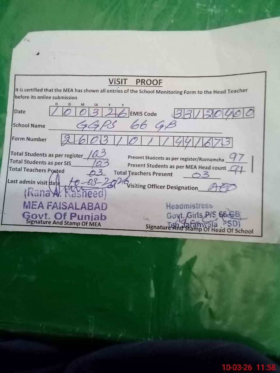 | EMIS Code: 33120400 | Name of School: GGPS CHAK 66 GB JARANWALA | |||