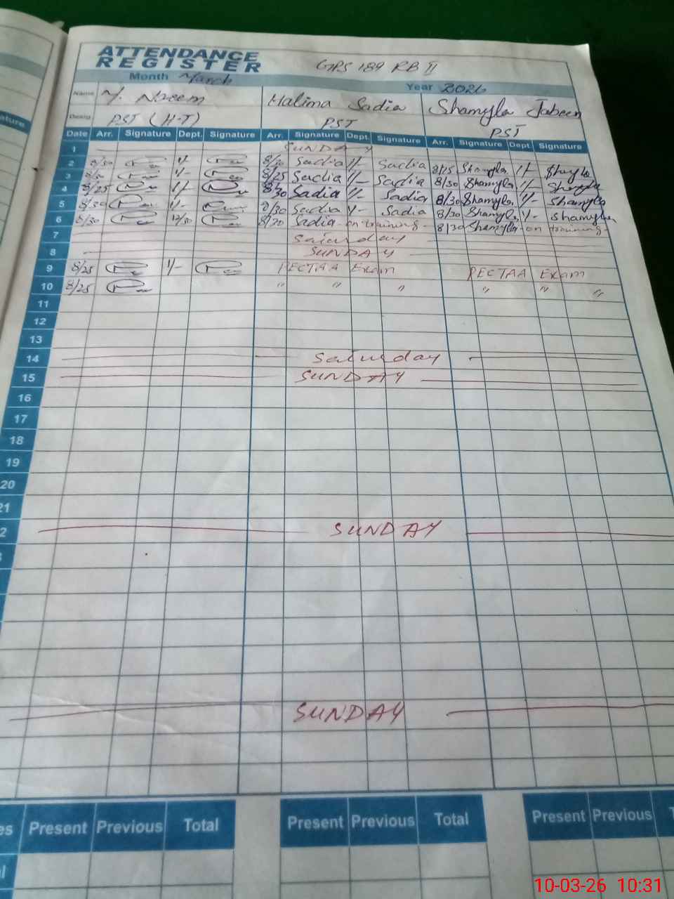| 33**** | Sh**** Ja**** | PST Arts | Regular | 0 | 0 | 0 | 0 | 0 | 0 | 0 | 0 | 0 | Exam Duty |