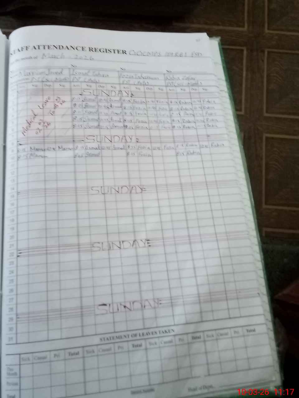 | 33**** | Ma**** Sh**** | PST Arts | Regular | 0 | 0 | 0 | 0 | 0 | 0 | 0 | 0 | 0 | Maternity |