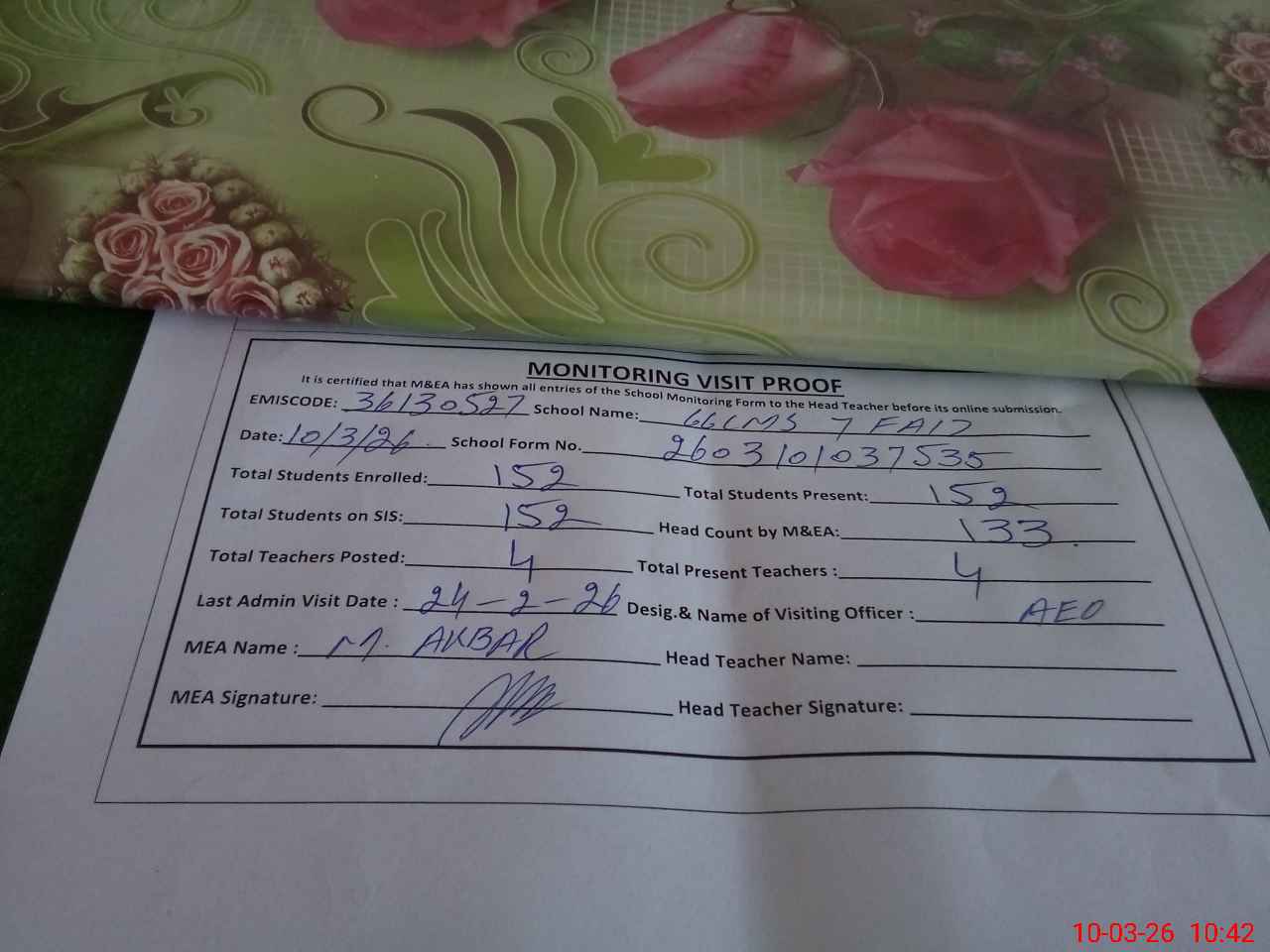 | EMIS Code: 36130527 | Name of School: GGCMS 7-FAIZ | |||