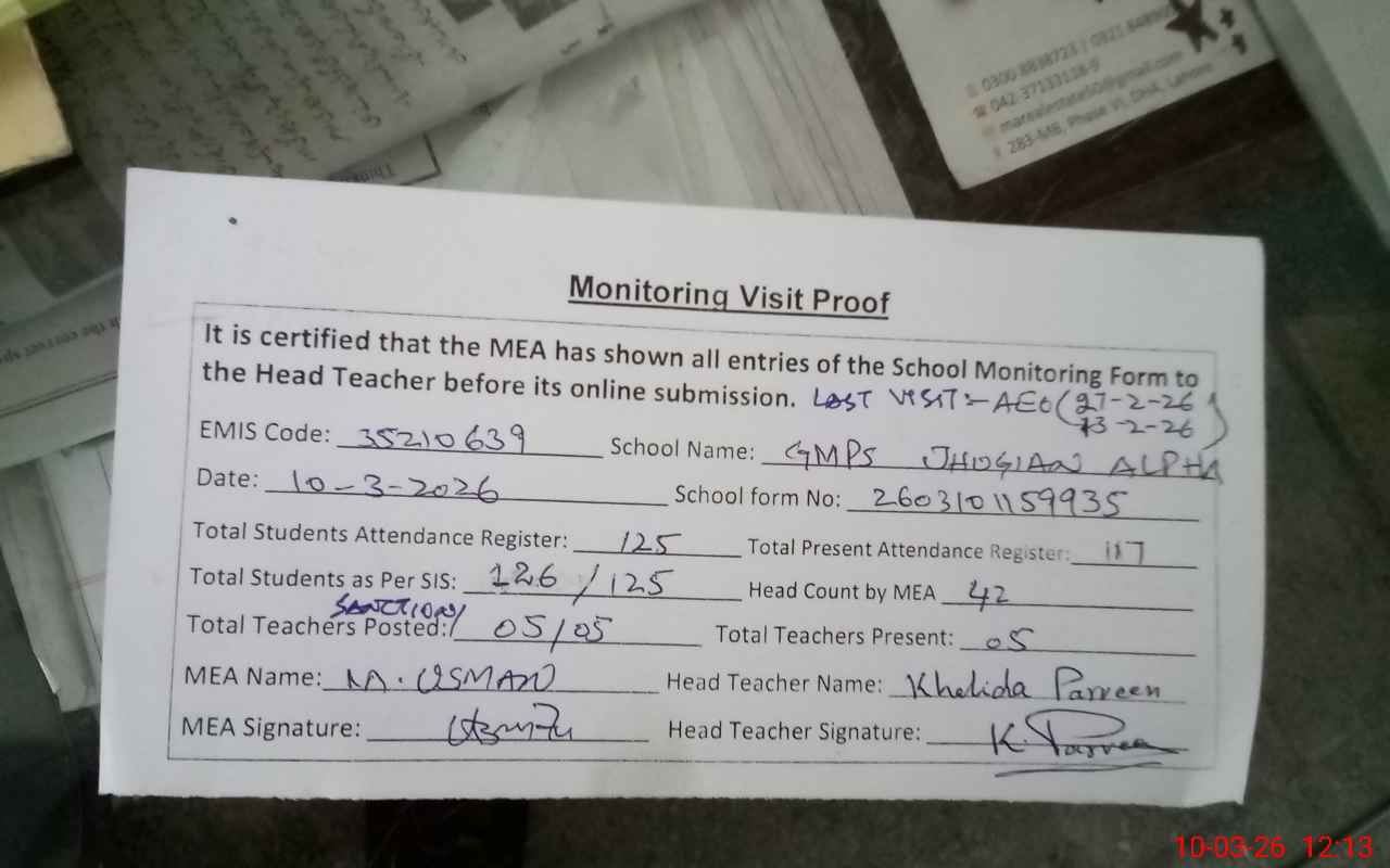 | EMIS Code: 35210639 | Name of School: GMPS JHUGIAN ALPHA | |||