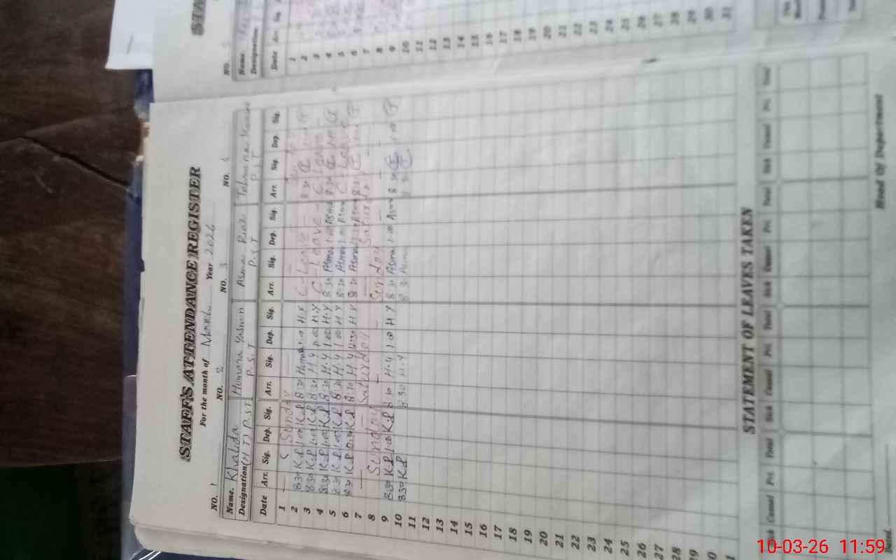 | Remarks (Use Separate Page if Required): 01 nonteaching staff named Farwa Nawal SG is long absent since September, 2025 06 wash rooms are nonfunctional due to no water and locked. 02 class rooms are looking dangerous since 2014 but building department still didn't visit. According to the statement of Head that students have gone after conducting the paper. Physically only 42 students were present. | |||||