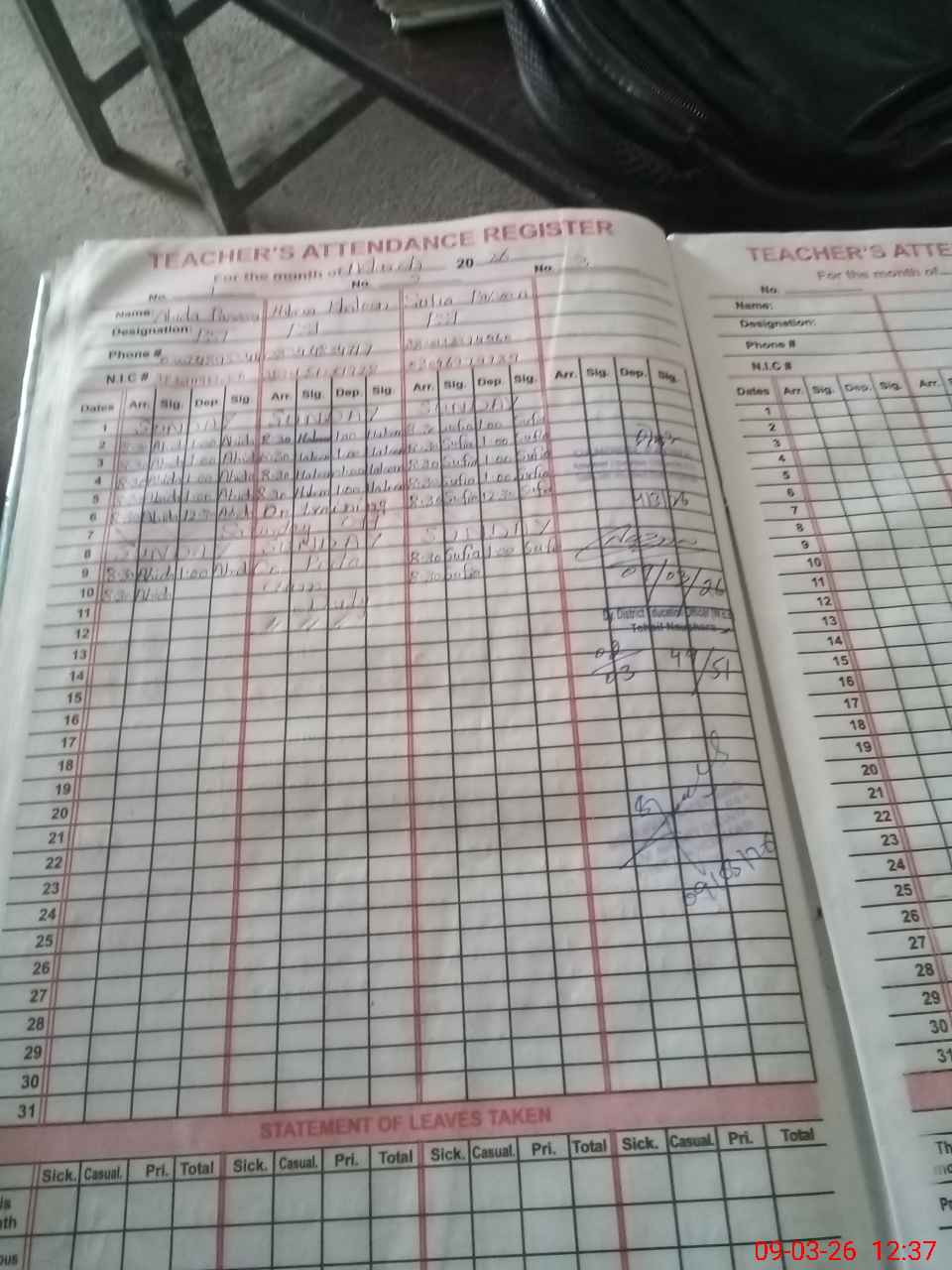 | 38**** | Ha**** Kh**** | PST Science/Maths | Regular | 0 | 0 | 0 | 0 | 0 | 0 | 0 | 0 | 0 | Exam Duty |