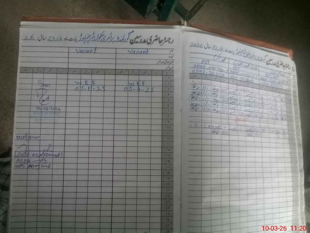 | Name: MU**** ZA**** Designation: (School Headmaster's/Headmistress's) PTC/JV Phone/Cell Number: 03**** |