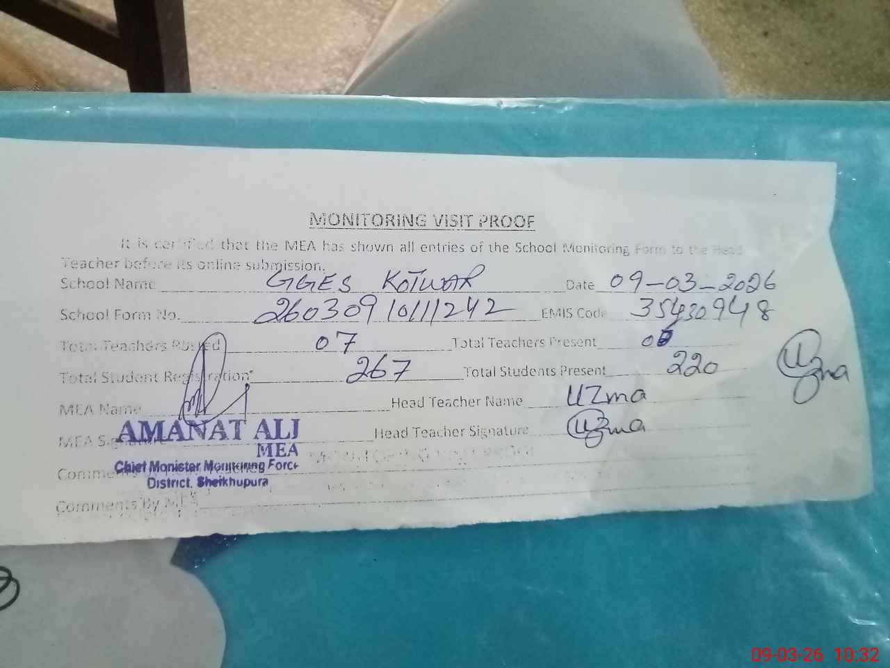 | EMIS Code: 35430948 | Name of School: GGES KOTWAR | |||