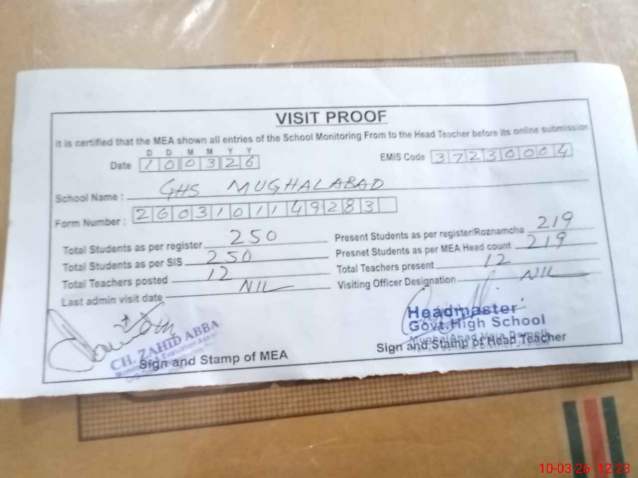 | EMIS Code: 37230004 | Name of School: GHS MUGHAL ABAD | |||