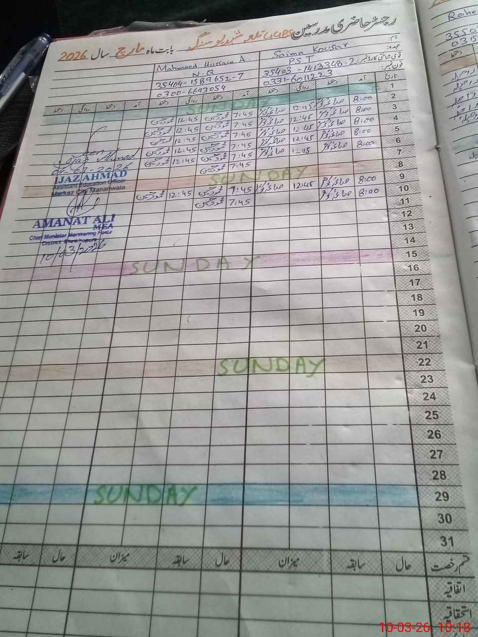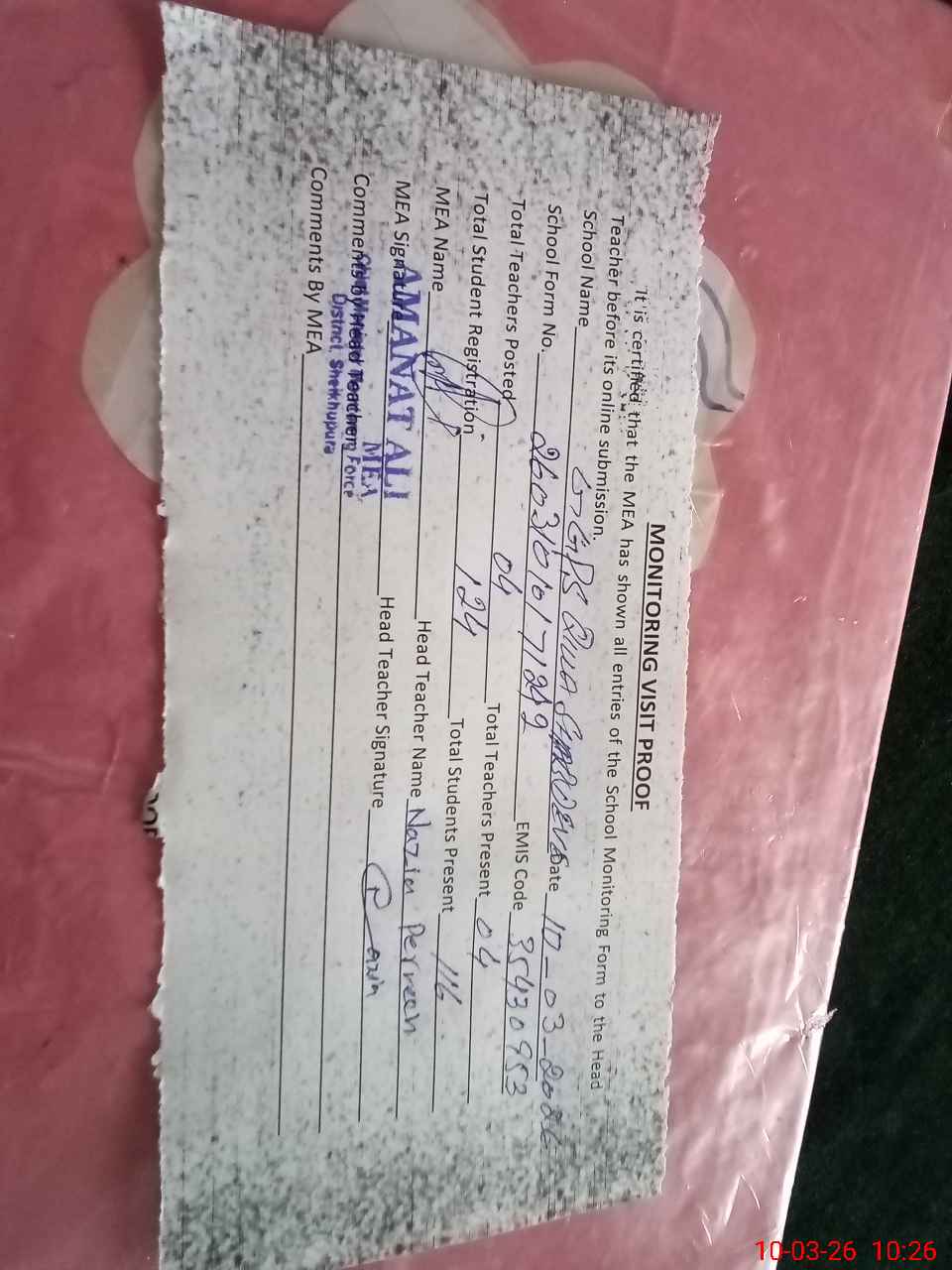 | Monitoring Date: 10-03-2026 | Start Time: 10-03-2026 10:09 AM | End Time: 10-03-2026 10:46 AM | Name of MEA: Am**** Al**** | |