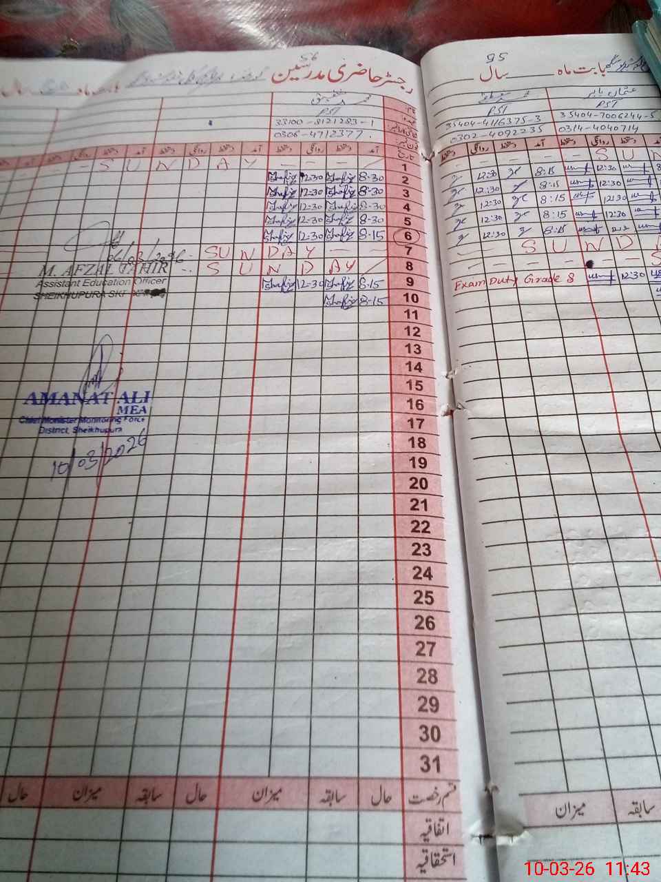 | Name: MU**** AS**** Designation: (School Headmaster's/Headmistress's) PST Phone/Cell Number: 03**** |