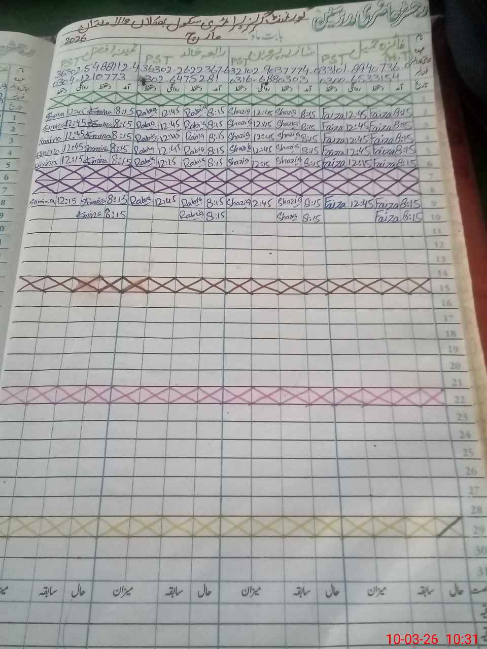 | CNIC | Full Name | Designation | R/C | Absence During Last Calender Month |