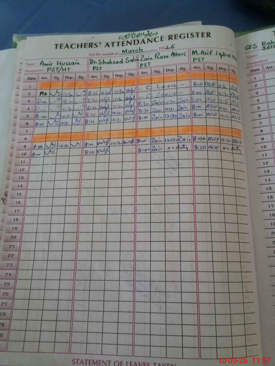 | 36**** | Mu**** As**** Iq**** Kh**** | ESE Arts | Contract | 0 | 0 | 0 | 0 | 0 | 0 | 0 | 0 | 0 | Exam Duty |