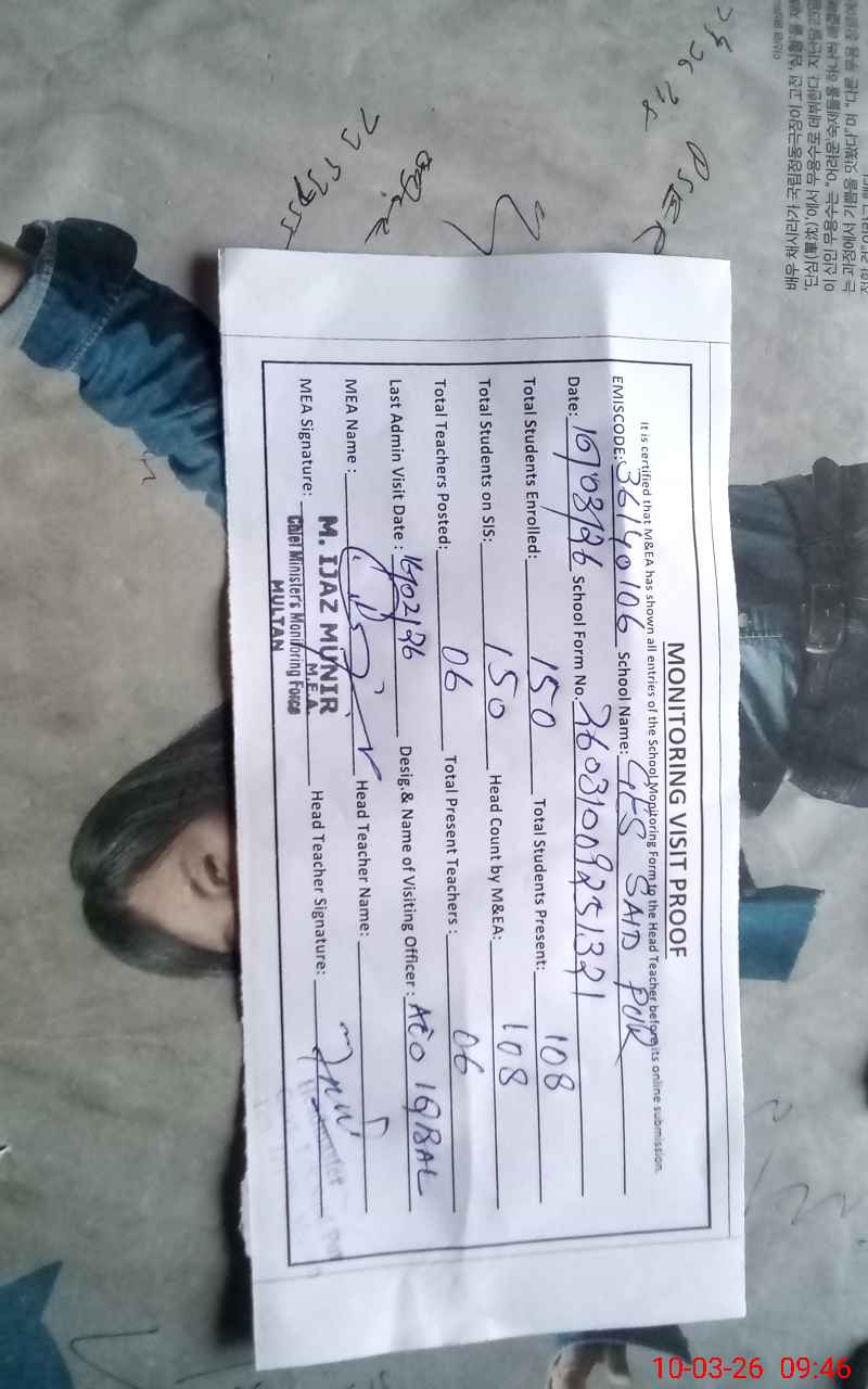 | EMIS Code: 36140106 | Name of School: GES SAID PUR HAFIZ WALA | |||