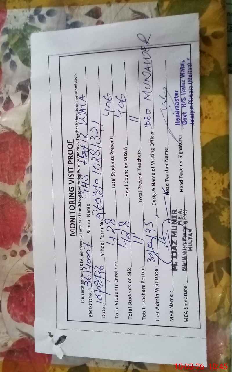 | EMIS Code: 36140007 | Name of School: GHS HAFIZ WALA JALALPUR PIRWALA | |||