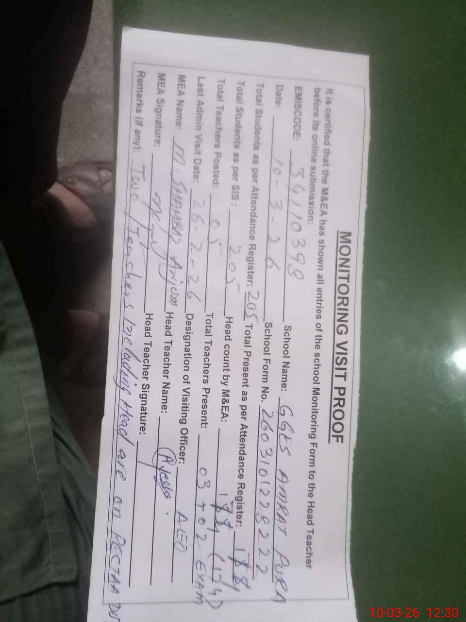 | EMIS Code: 34110398 | Name of School: GGES AMRAT PURA | |||