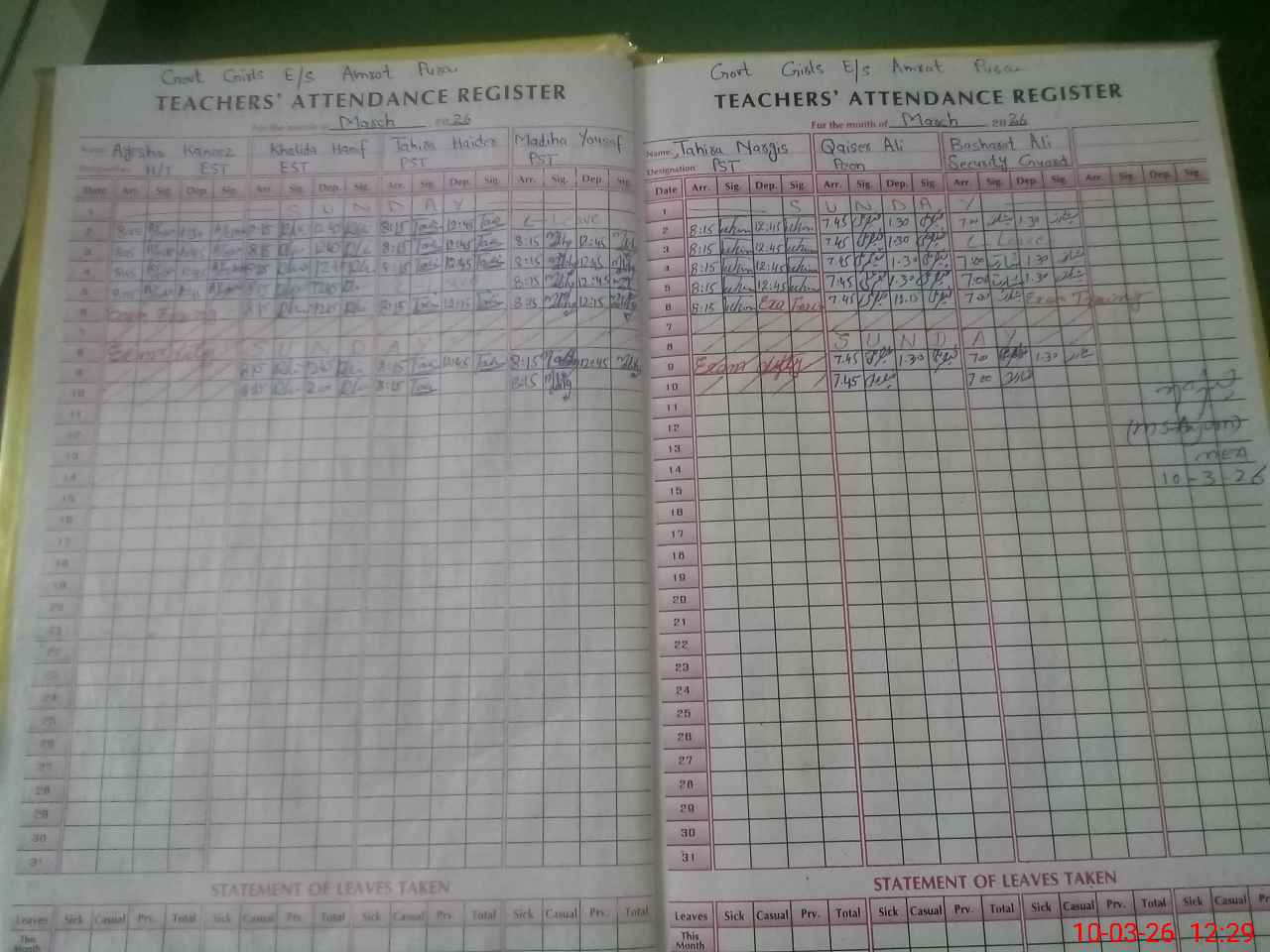 | Total no. of Classrooms: 9 No. of Classrooms Used for Teaching: 7 No. of Classrooms Storing Old Furniture, FTBs, etc: 0Comments if Any: MUCH BETTER STANDARD OF SCHOOL NSB AND FTF RECORD WELL MAINTAINED IN TAB AND REGISTER GOWNS NO CLEANLINESS OF SCHOOL IS CARRIED OUT BY SWEEPER HIRED FROM NSB ATTENDANCE OF TEACHERS AND STUDENTS IS NOT BEING SENT ON LINE VIA SIS HEAD TEACHER IS FACING |