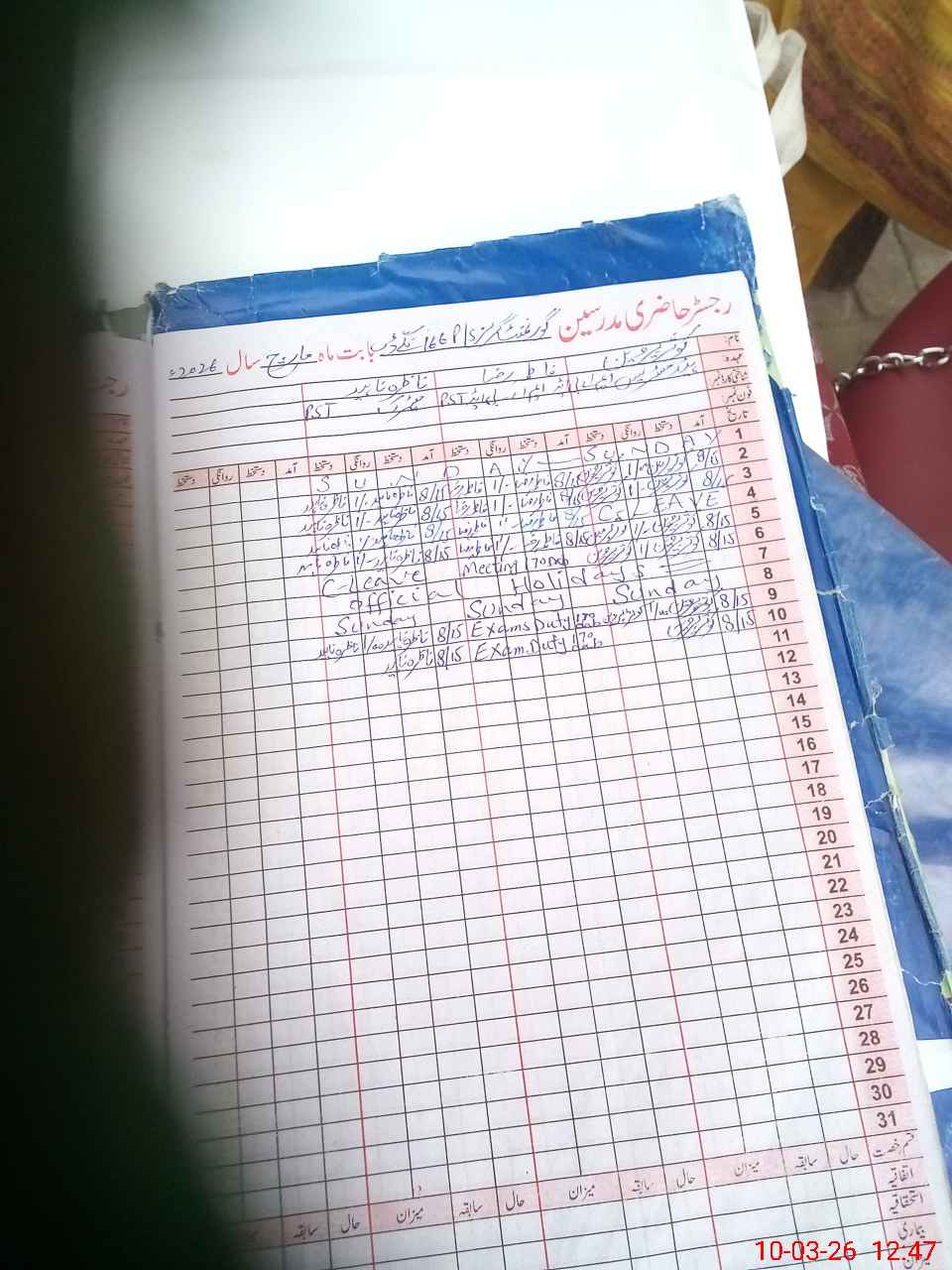 | 33**** | Fa**** Ra**** | PST Arts | Regular | 0 | 0 | 0 | 0 | 0 | 0 | 0 | 0 | 0 | Exam Duty |