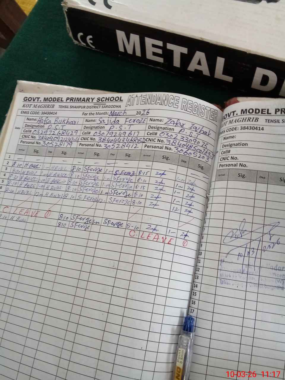 | Name: Ha**** Bu**** Designation: (School Headmaster's/Headmistress's) PST Phone/Cell Number: 03**** |