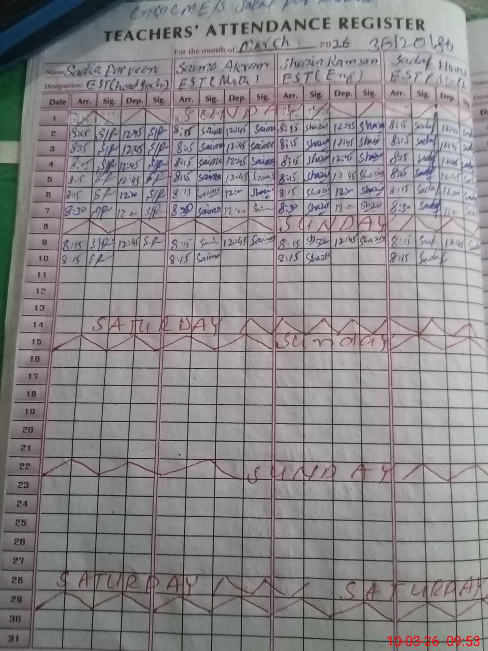 | 36**** | Sh**** Ma**** | PST Science/Maths | Regular | 0 | 0 | 0 | 0 | 0 | 0 | 0 | 0 | 0 | Exam Duty |