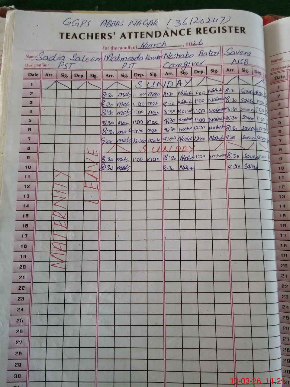 | 36**** | Sa**** Sa**** | ESE Science | Contract | 0 | 0 | 0 | 0 | 0 | 0 | 0 | 0 | 0 | Maternity |