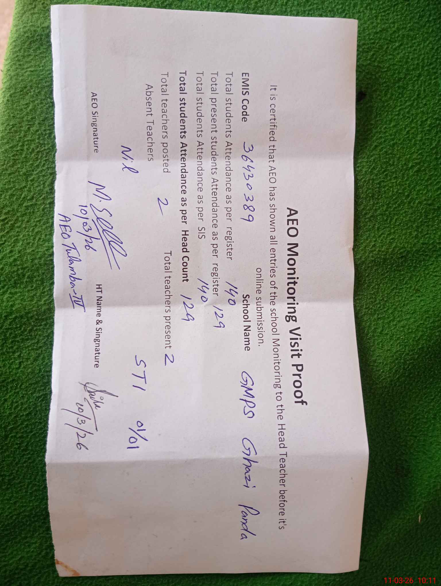 | EMIS Code: 36430389 | Name of School: GMPS GHAZI PANDA, TULAMBA | |||